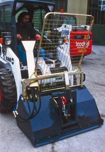 Opera prevalentemente in ambiente esterno rigidamente collegato ad un skid-loader dotato di attacco rapido di tipo universale. Gli azionamenti e comandi sono esclusivamente idraulici, il tutto collegato all’impianto dello skid-loader.